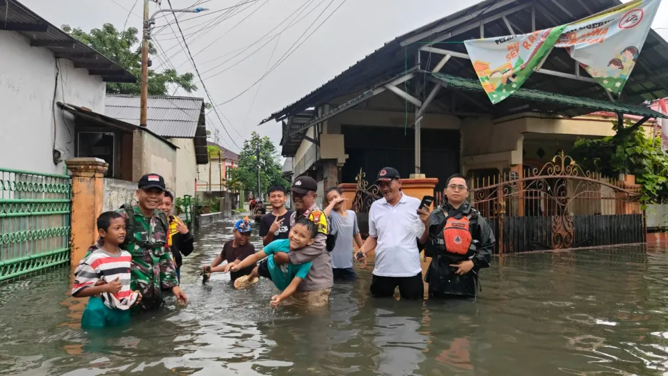 KOTA BEKASI – Intensitas hujan sedang hingga lebat yang mengguyur sejak Sabtu malam menyebabkan aliran Kali Alam meluap dan merendam pemukiman warga di wilayah RW 003, Kelurahan Kalibaru, Kecamatan Medan Satria. Hingga Minggu pagi (18/01/2026), personel Polsek Medan Satria bersama jajaran Tiga Pilar masih bersiaga di lokasi untuk melakukan monitoring dan evakuasi paska banjir.