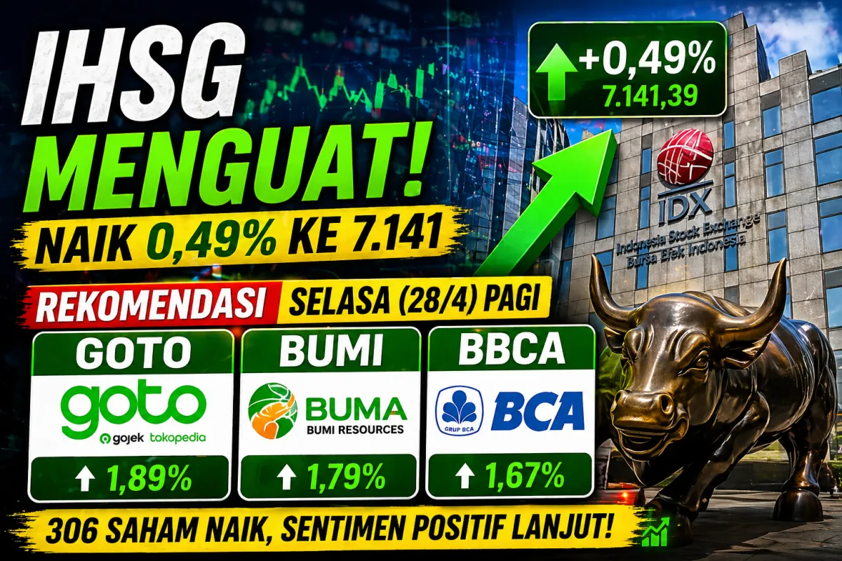 JAKARTA – Pergerakan pasar saham Indonesia membuka perdagangan hari ini dengan sentimen positif. Indeks Harga Saham Gabungan (IHSG) tercatat menguat pada sesi awal perdagangan Selasa (28/4/2026), menandai optimisme pelaku pasar di tengah dinamika global dan domestik yang masih fluktuatif.
